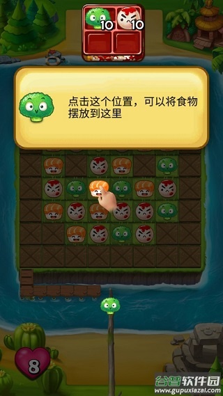 游戏采用创新的串签消除机制,用竹签串联相同食物完成消除。消除数值相当于生命值,当一方数值归零即告失败;