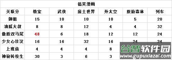 其余搞笑漫画搭配分数请见下表: