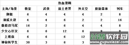 其余热血漫画搭配分数请见下表: