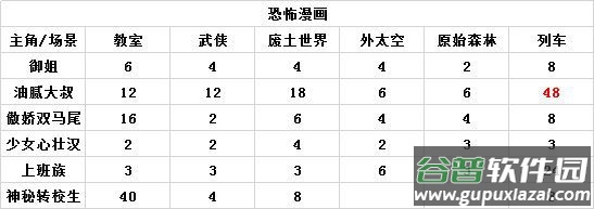 其余恐怖漫画搭配分数请见下表: