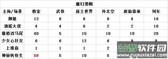 其余魔幻漫画搭配分数请见下表: