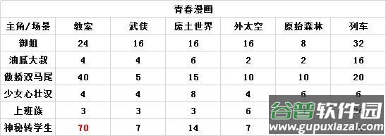 其余青春漫画搭配分数请见下表: