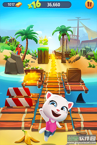 3、角色养成系统:解锁安吉拉、汉克狗等伙伴,每个角色拥有不同的跑酷技能。