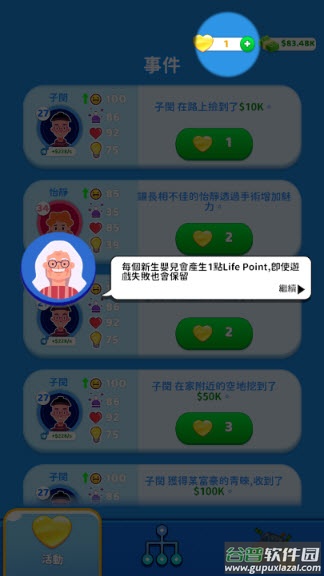1、从襁褓中的婴儿成长为独当一面的大人,每个新生命诞生都会带来独特的成长点数(Life Point),影响未来的生活轨迹。