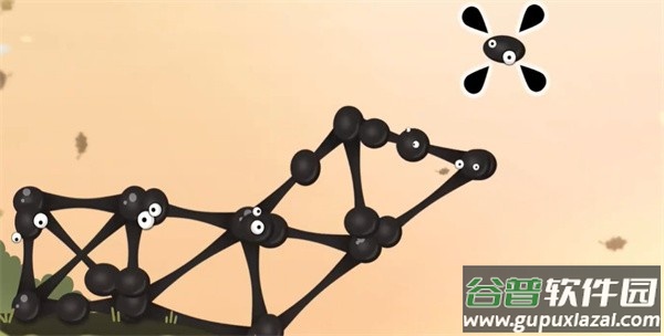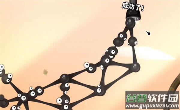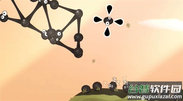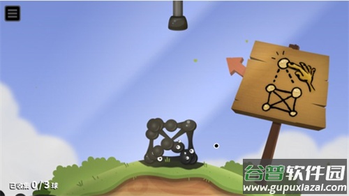 1、玩家需要利用粘粘球搭建一个大桥,记得把距离拉长一点,并且游戏加入了重力设定,粘粘球会直接垂下来。
