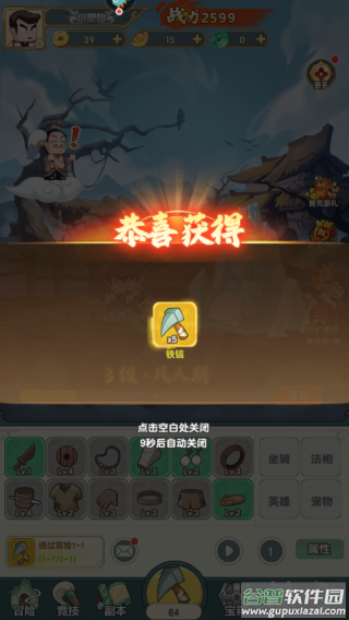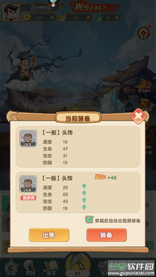 2、根据获取的装备与自身的装备进行比较,将高属性的装备留下,出售低属性装备换取铜币;