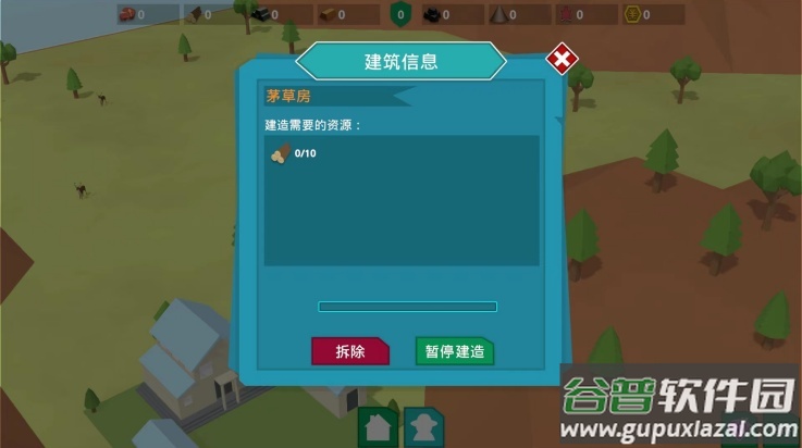 8、再次点击相应的建筑,可进行拆除和暂停建造等操作;