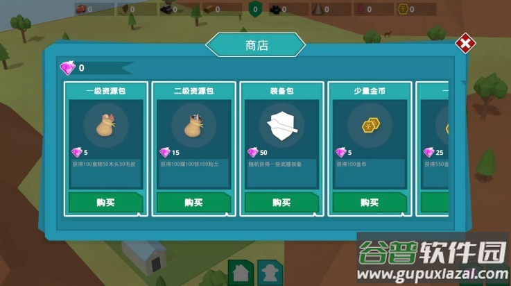11、进入右下方的【钻石】图标,可以进入商店,玩家可根据需求自行选择相应的资源包、装备、金币等物资;