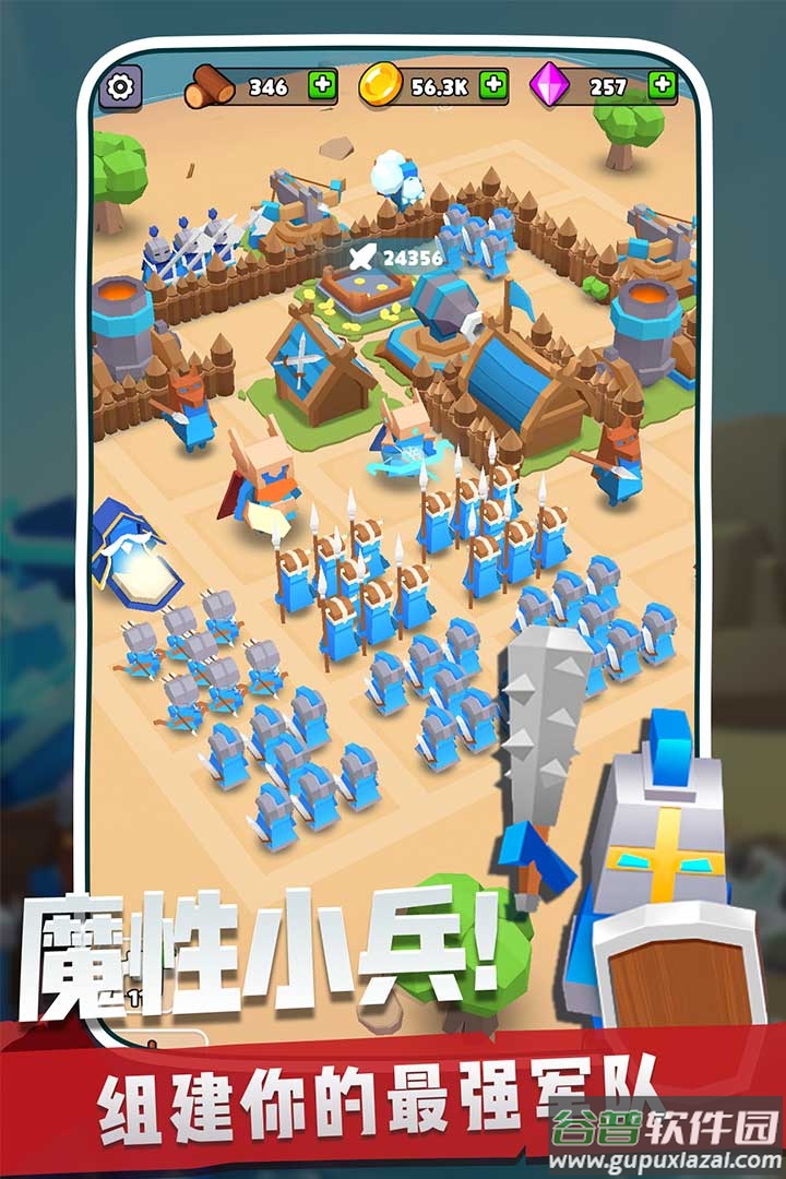 3、通关后领取奖励返回主界面,通过抽卡系统扩充部队规模;战力提升采用合成机制,操作方式简单易上手;