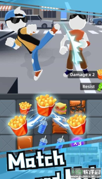 街头打架是一款将消除玩法与格斗元素结合的休闲手游,玩家通过滑动屏幕消除相同图案来积攒能量,触发角色施展拳脚功夫击败对手。游戏采用鲜艳的卡通画风,搭配夸张的打击特效,每个关卡都有不同的敌人需要应对。随着关卡推进,玩家能解锁更多技能连招和搞怪角色,比如会喷火的厨师或是甩着双截棍的熊猫。喜欢的就来谷普下载。