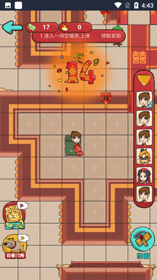 欢乐派对是近期抖音上爆火的一款休闲塔防手游,它将经典的猛鬼宿舍玩法与喜庆的婚礼场景完美结合。玩家可以自由选择扮演新郎或新娘角色,在布置婚房的过程中建造防御设施,通过升级房门、摆放道具来抵御对手的进攻。游戏采用清新明亮的色彩搭配,Q版卡通人物造型充满喜感,各种婚礼主题的防御道具更是让人眼前一亮。独特的主题创新让传统塔防玩法焕发新生,喜欢这类创意小游戏的朋友快来谷普下载体验吧。