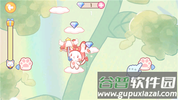 6、通过点击左右猫爪控制猫咪跳跃方向;