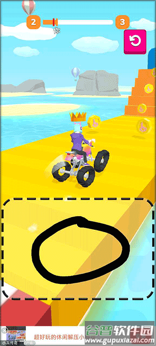 1、安装完成后启动游戏,在底部黑色画板处绘制对应图形,角色会根据图形变换车轮前进;