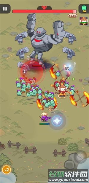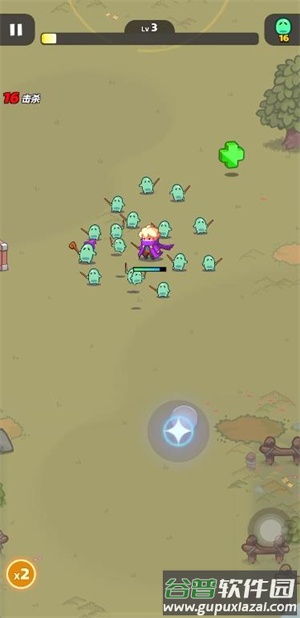 2.通过滑动屏幕控制角色走位,进入攻击范围后会自动锁定目标;
