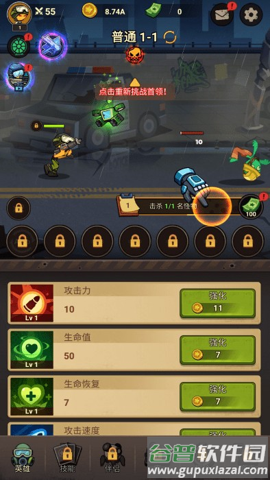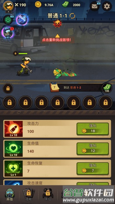 3、按照任务链推进关卡,每个区域最终需要消灭戴着牛角盔的尸王;