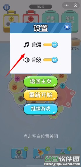 2、在音频设置栏分别调节背景音乐和音效音量,支持完全静音;