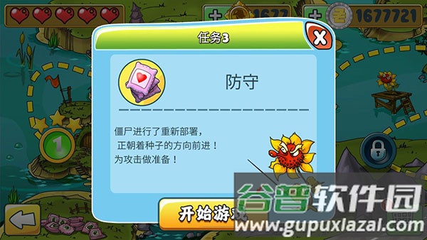1、在本站下载植物僵尸守卫战游戏。打开点击"开始游戏"