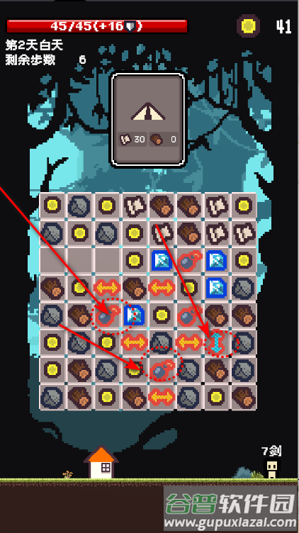 2、白天消除收集材料,夜晚自动进入防御模式;