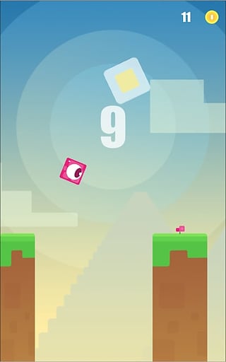 游戏核心是控制方块角色的弹跳轨迹。当角色腾空时,玩家需滑动屏幕调整水平位置,确保能准确落在下一个平台上。连续成功跳跃会加快游戏节奏,失误则会结束当前回合。系统会自动记录最远跳跃距离,激发玩家的挑战欲望。