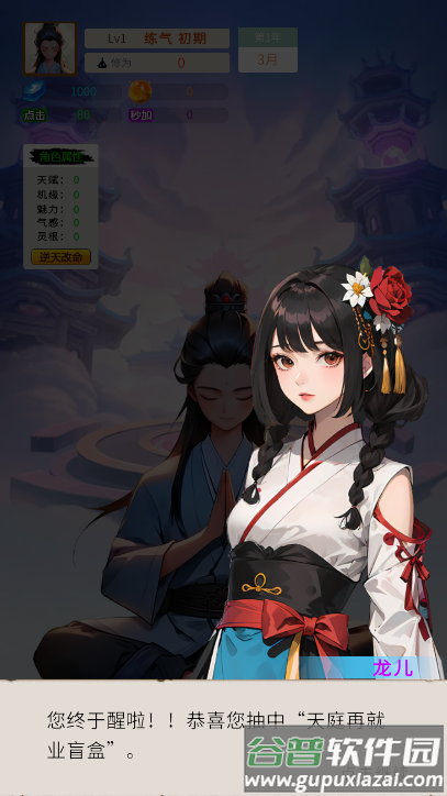 2、创建角色后完成仙缘测试,决定初始灵根属性;