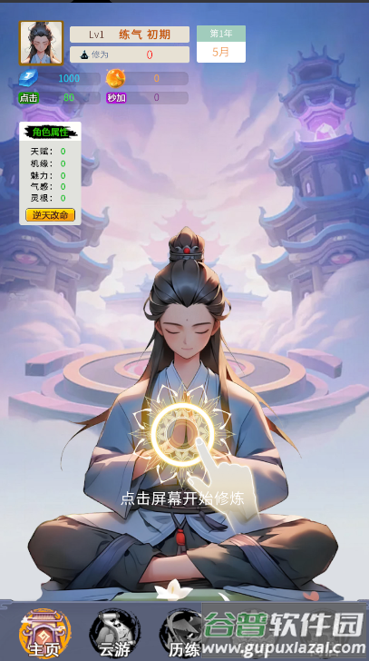 4、点击修炼按钮积累真气,长按可触发暴击效果;