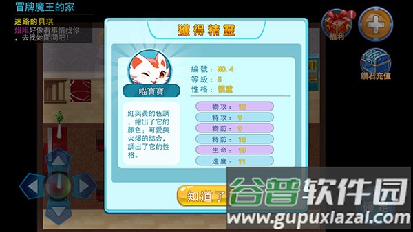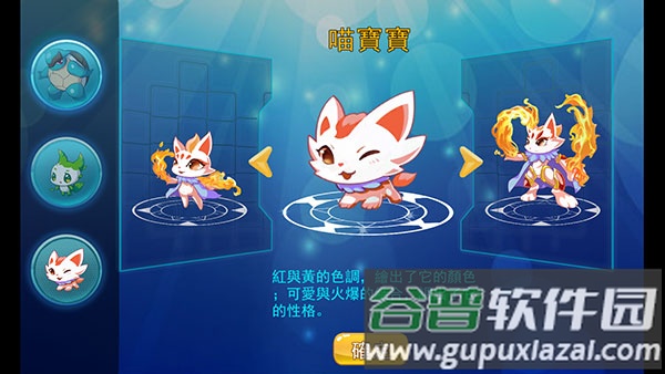 1、游戏开始时可以从三只初始精灵中选择一只作为伙伴,根据属性偏好做出你的选择;