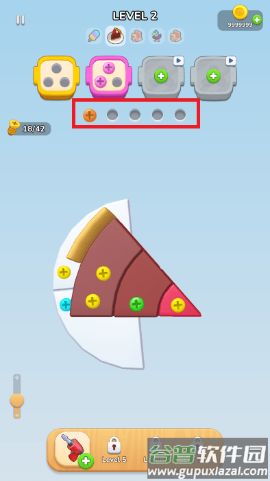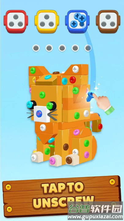 安装游戏后,点击与盒子颜色相同的螺丝进行收集。当收集到三个同色螺丝时,它们会自动消除并解锁新关卡。