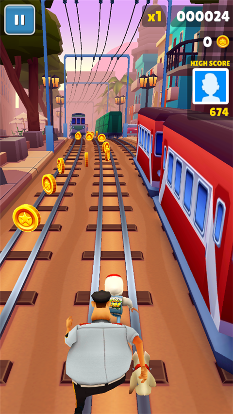 2、在列车顶部移动视野更好,沿着金币轨迹跳跃可以保持安全路线。