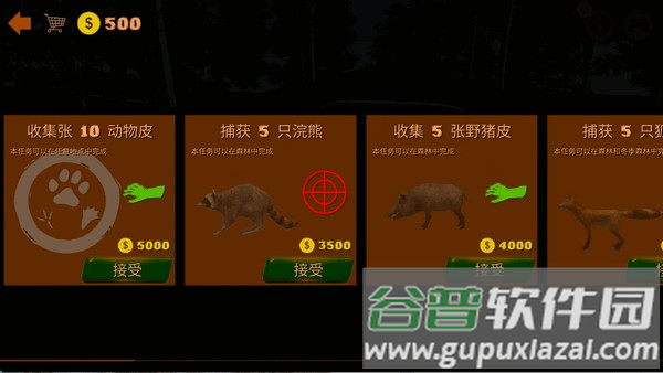 3、二十余种专业狩猎装备可供解锁,包括步枪、弓箭等不同器械;