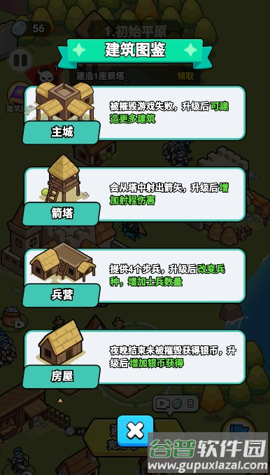 3、点击空地消耗银币建造防御塔,相同类型建筑相邻建造可激活连锁加成效果;