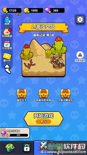 1、点击主界面开始按钮进入关卡选择,已通关关卡可重复挑战获取资源;