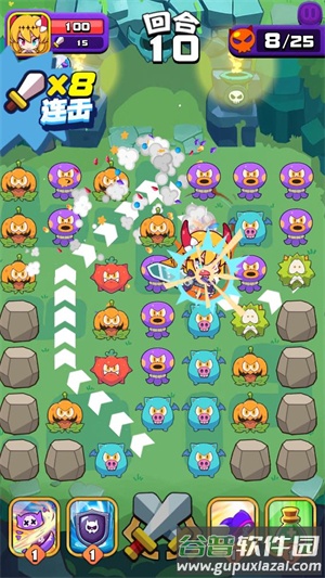 只需手指滑动连接相同怪物即可发动攻击,连击数越多伤害越高。不同怪物拥有专属攻击方式,需要针对性制定策略。