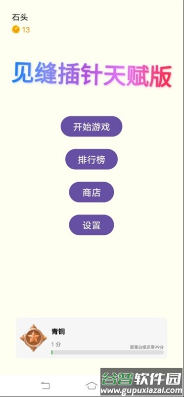 见缝插针天赋版是一款考验手速与反应力的休闲闯关游戏,采用极简风格设计,画面清爽操作直接。玩家需要通过快速点击屏幕将细针精准插入旋转圆盘的缝隙中,点击速度越快发射的针数量越多。随着关卡推进,圆盘转速逐渐提升,方向也会随机变化,挑战玩家的极限操作能力。游戏加入了独特的天赋系统,为闯关过程增添策略性,喜欢的就来谷普下载。