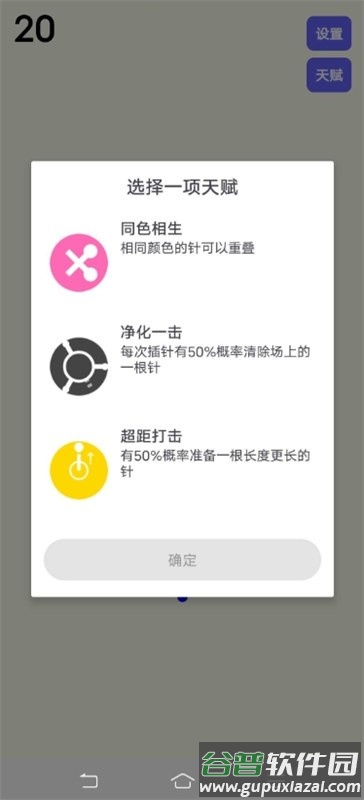 2、净化一击:每次成功插针时,有半数几率随机消除一根场上现有针体;
