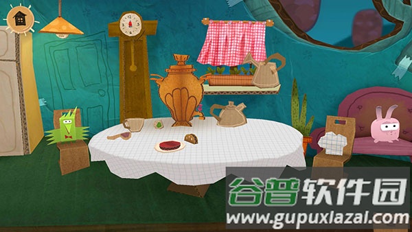 3、与纸艺角色进行互动,比如准备餐点或玩过家家游戏;