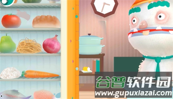 2、游戏界面左侧陈列着各类新鲜食材,胡萝卜、鱼肉等都可以直接拖取使用。