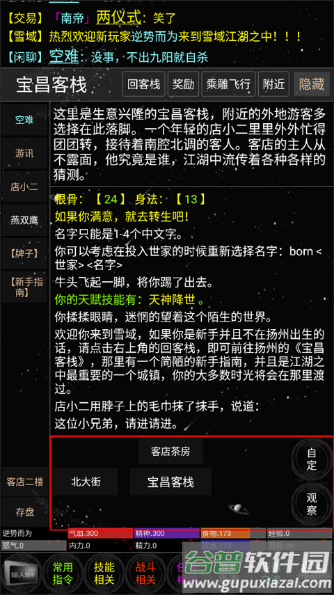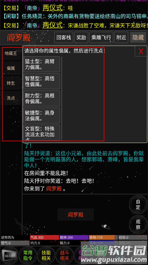 初始天赋随机生成,可通过指令自杀重刷。推荐优先积累基础属性,铁匠铺打工和书院抄书是新手期最佳选择。