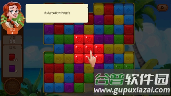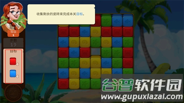 基础玩法需要连接两个以上同色砖块进行消除,注意左侧会显示当前关卡的具体目标要求;