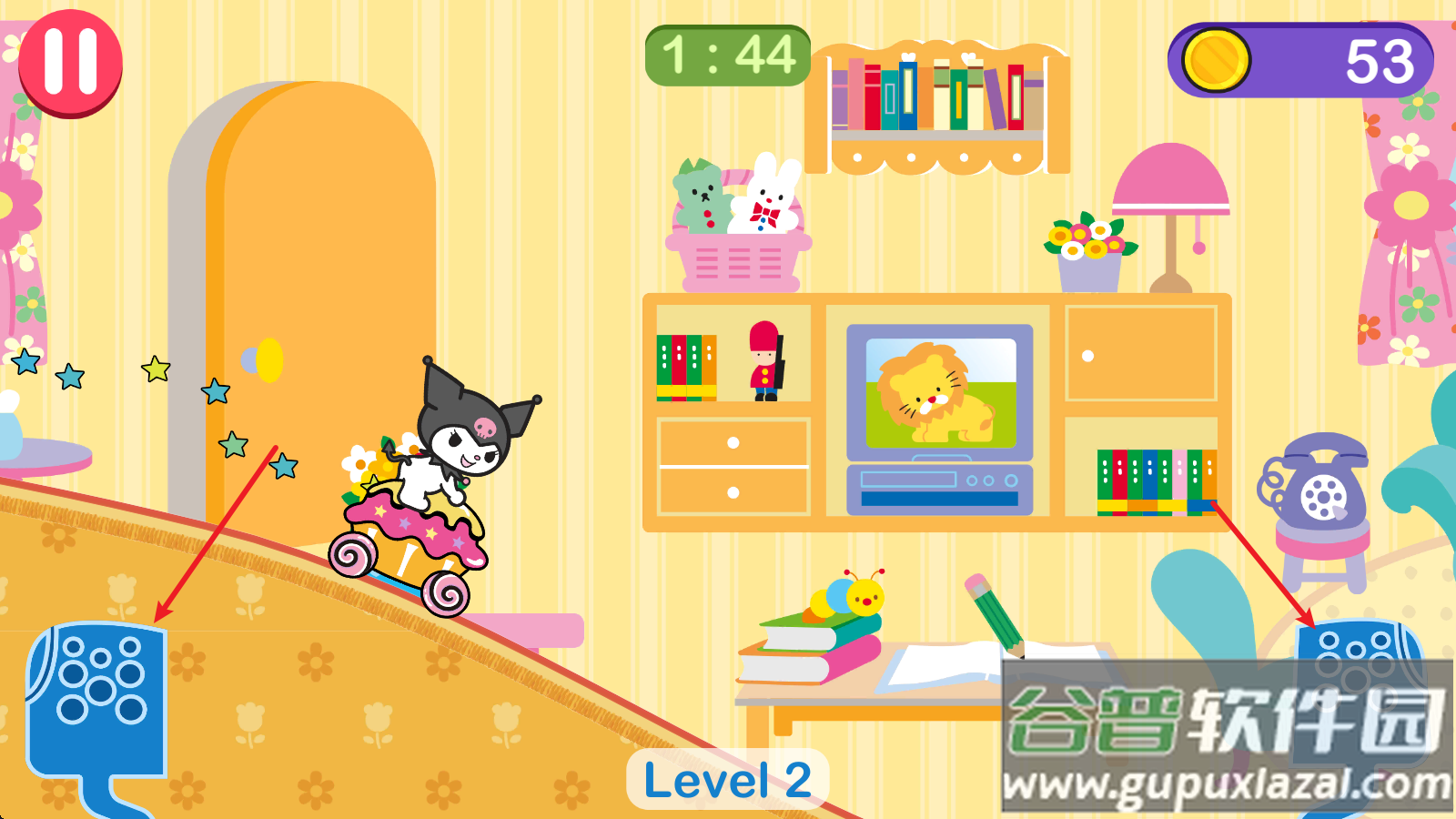 赛道中设置的生活物品会形成障碍,成功跨越时角色会做出俏皮动作;