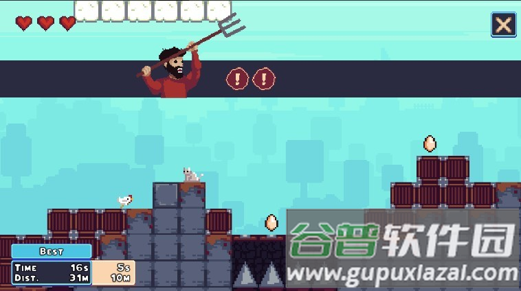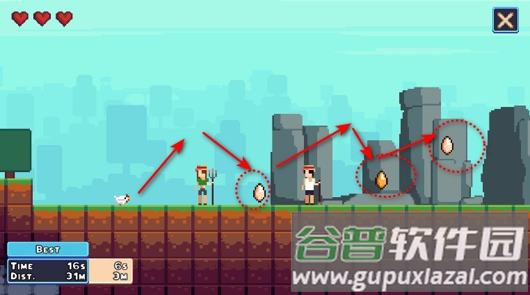 2、奔跑过程中会遇到金色鸡蛋,触碰可加分,但要避开移动的障碍物;