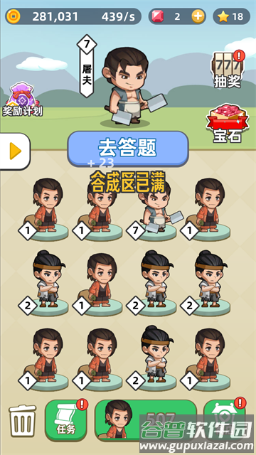 2、合成升级:通过合并相同角色提升等级,获得更强属性和更多收益;