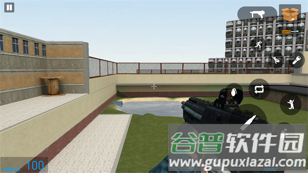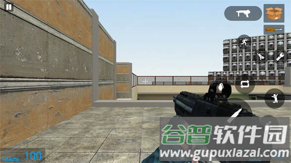 4、左侧虚拟摇杆控制移动方向,右侧按键负责射击、跳跃等动作,顶部武器栏可随时切换装备。
