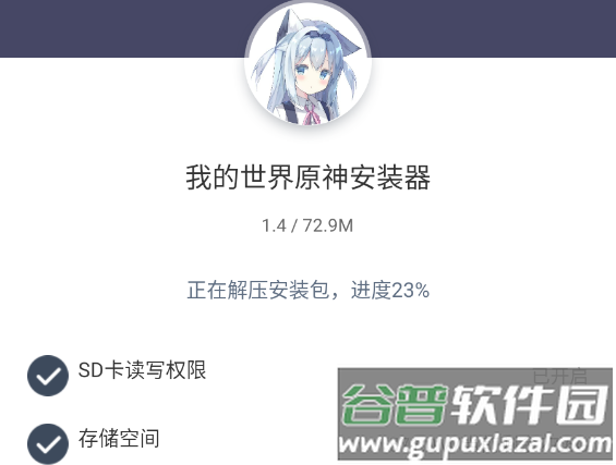 1、启动安装器自动解压数据包,遇到安全提示需授权存储权限;