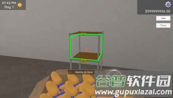 1、游戏开始后,先收集散落在店门外的纸箱。这些纸箱里装着首批进货的玩具商品。