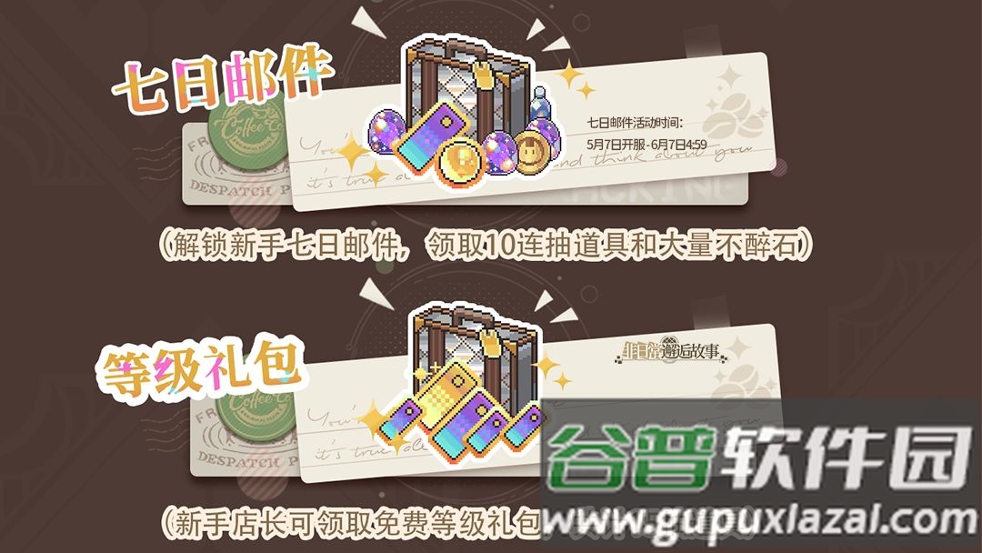 【七日邮件】完成新手引导及等级提升,累计登录七天可领取约35次抽卡机会和400不醉石;