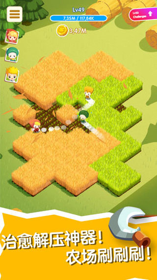 刚开始玩特别上头,收割作物的手感很爽快。不过升到50级后难度突然增加,挑战关卡需要反复刷级才能通过。解锁新农场后包心菜的收益反而不如小麦,这个数值设定可能需要优化。虽然有些小问题,但整体玩法还是挺有意思的。