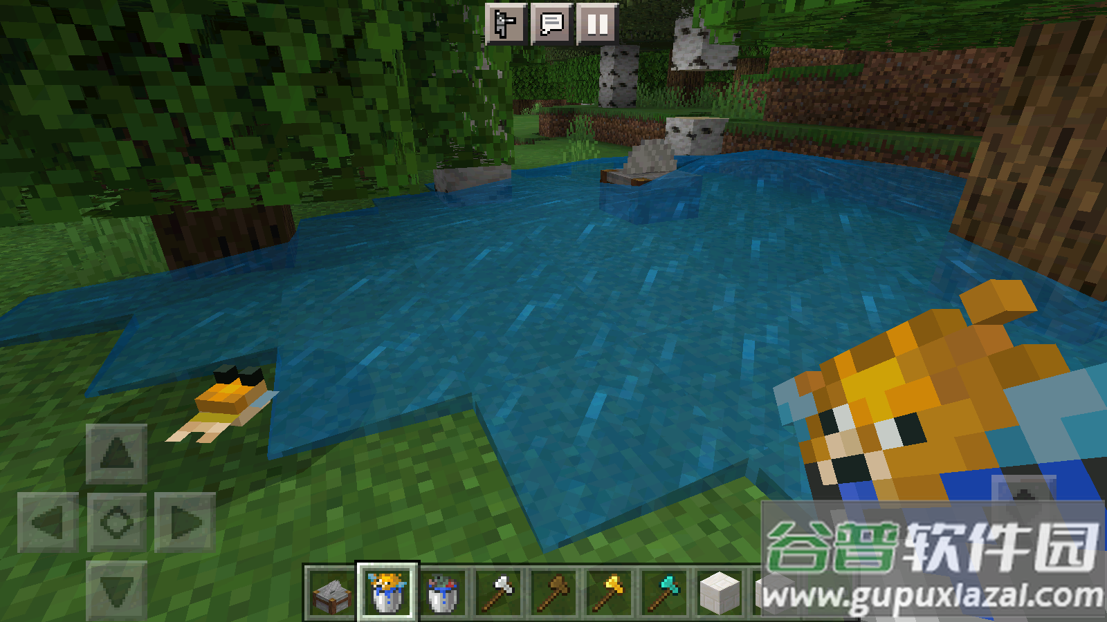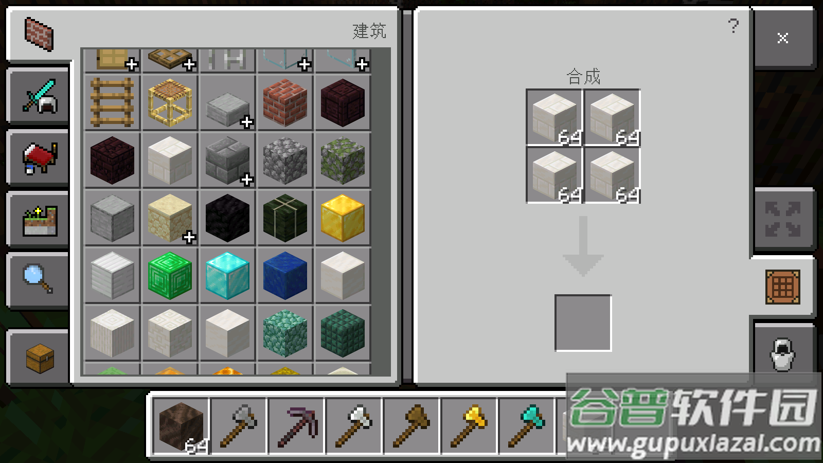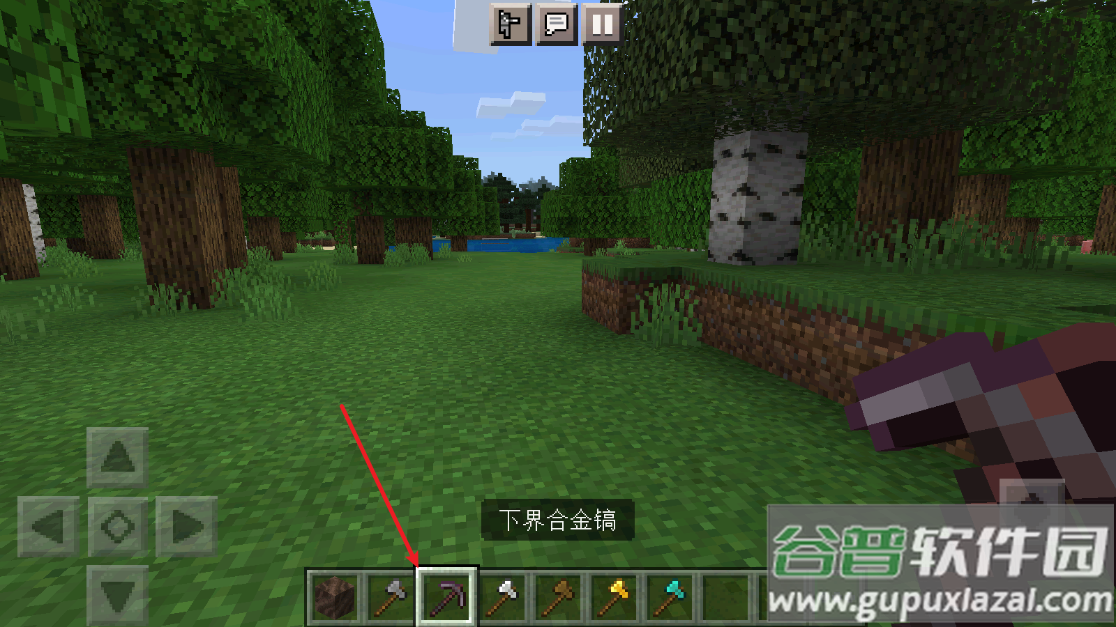 3、滑动物品栏快速切换工具,点击背包整理收集的材料;