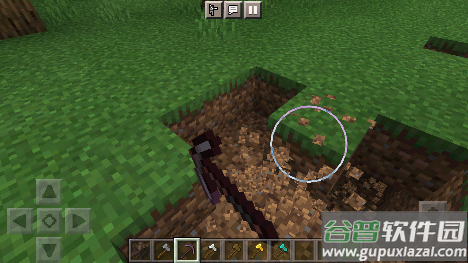 2、长按屏幕可采集资源,不同工具影响采集效率;