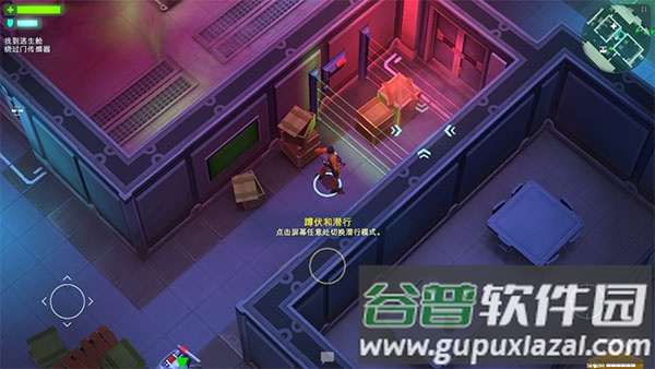 5、遇到低矮通道时点击下蹲按钮,这个动作也能降低被敌人发现的概率;
