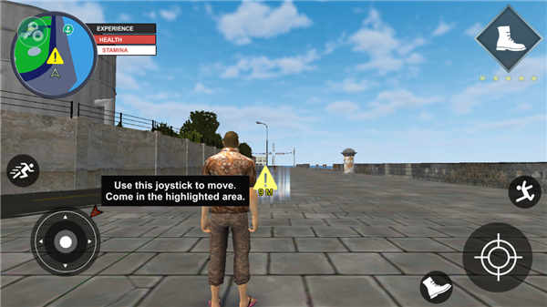 1、屏幕左侧虚拟摇杆控制移动,右侧按钮执行跳跃射击等动作
